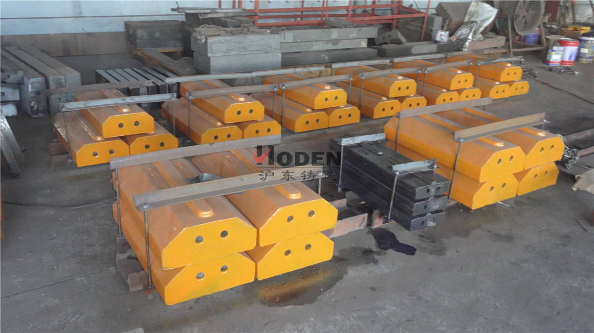 型碳化物呈六角形杆状及曲面板条状,分布在基体中。相对于普通白口铸铁或低铬铸铁而言,可以认为高铬铸铁中的碳化物是不连续相,而基体是连续相。也就是说碳化物对基体的破坏作用大大减小,因而高铬板锤高铬铸铁的韧性优于普通白口铸铁和低铬铸铁。M7C3型碳化物的硬度很高,其显微硬度HV1300-1800,而M3C型碳化物的显微硬度只有HV800-1200,因此M7C3型碳化物的形成赋予了铸铁以高的硬度。通过添加其他合金元素以及适当的热处理,高铬铸铁可以获得不同的基体组织,以满足各种不同工况对抗磨材料提出的性能要求。 高铬铸铁是一种比较复杂的多元合金。影响其组织与性能的因素很多。采用多元合金化可以改善组织,提高高铬铸铁的硬度和韧性。